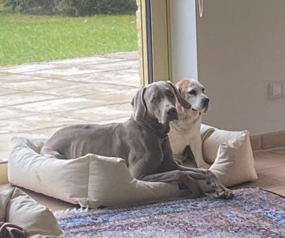 Das war ein aufregender und anstrengender Nachmittag für Seppl (und für mich). So hat Seppl heute Morgen auch gleich ein knappes Stündchen länger geschlafen, bis vor kurzem schon wieder Hundebesuch kam. Diesmal gleich drei große braune Labradore ...