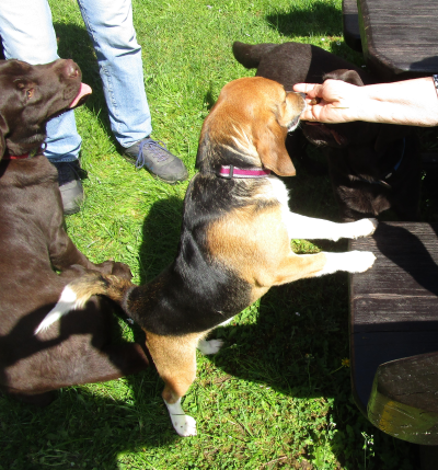 Hier in der Gegend hat sich unter der Hundebevölkerung schon rumgesprochen, dass Seppl alle bespaßt und ein nahezu kostenfreies (außer ein paar Leckerchen) Fitnesstraining anbietet.