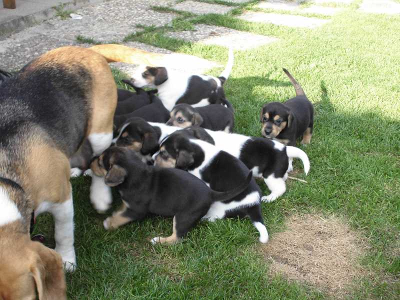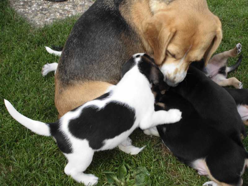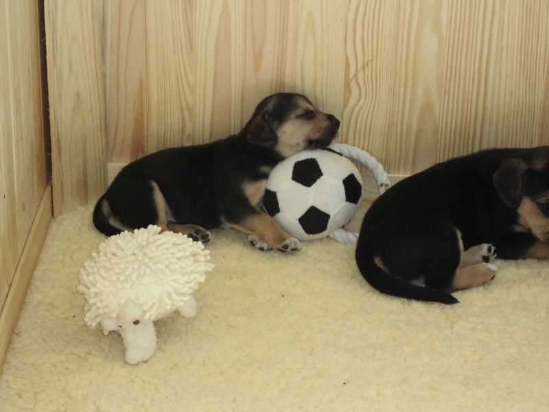 es haben alle zur gleichen Zeit geschlafen, danach sind zwei oder drei Welpen aufgewacht und auf die anderen draufgestiegen,