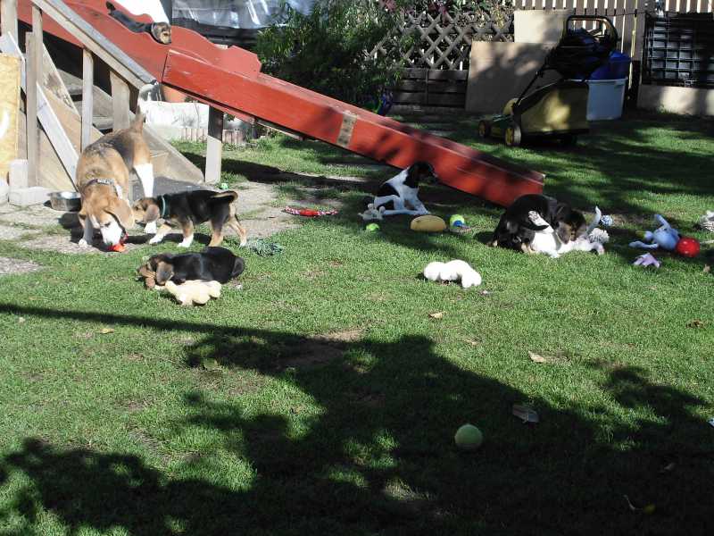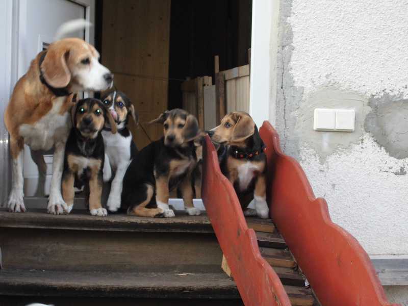 10 Welpen am Hosenbein hängen und dann muss man so aufpassen, wo man hintritt. Der ein oder andere hat schon Mal