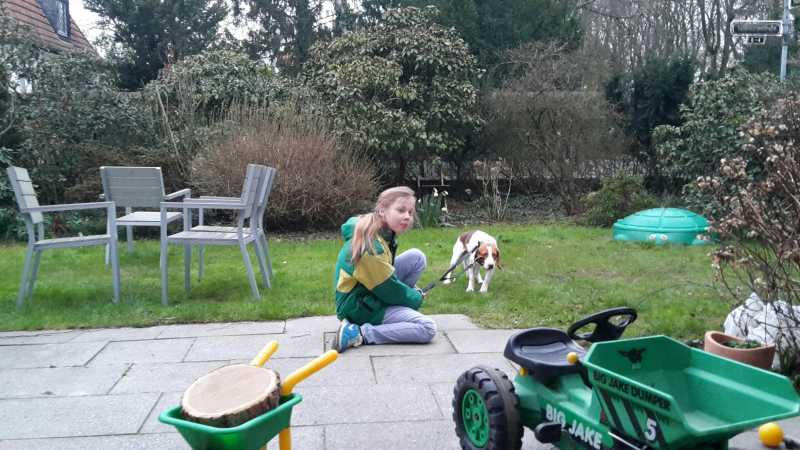 Die kleinen Ausflüge in den Garten sind noch sehr stressig für Hugo und er lässt sich immer noch raustragen (selbst laufen wäre ja auch viel zu gruselig...). Wir haben begonnen einen Zaun in unserem Garten zu bauen, damit Hugo den Garten selbst und ohne Leine erkunden kann, der ist aber noch nicht beaglesicher und muss noch ausgebessert werden. Hoffentlich wird Hugo dadurch entspannter und freut sich vielleicht sogar auch mal auf eine Tour in unseren kleinen Garten.