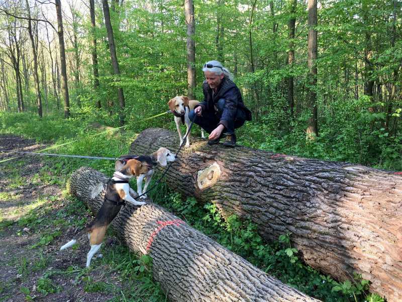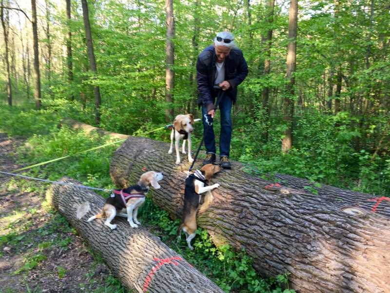 Dennoch ist sie auf der heutigen Runde doch tatsächlich ein ganzes Stück ganz gut bei Fuß gelaufen - etwas, worauf ich bisher erstmal gar keine Wert gelegt hatte. Für Spielzeug hat sie sich heute draußen interessiert und ist einem Ball nachgelaufen und hat ihn mehrmals erfolgreich erlegt. Sie war wieder in zwei Teichen, um Leckerlies vor dem Ertrinken zu retten. Ja, und sie hat ihren ersten Baumstamm erobert und durfte sich ins Gipfelbuch eintragen. Okay, sie brauchte beim ersten Versuch noch Sauerstoffflaschen und Sherpas, die sie führten. Bald kann sie es allein.